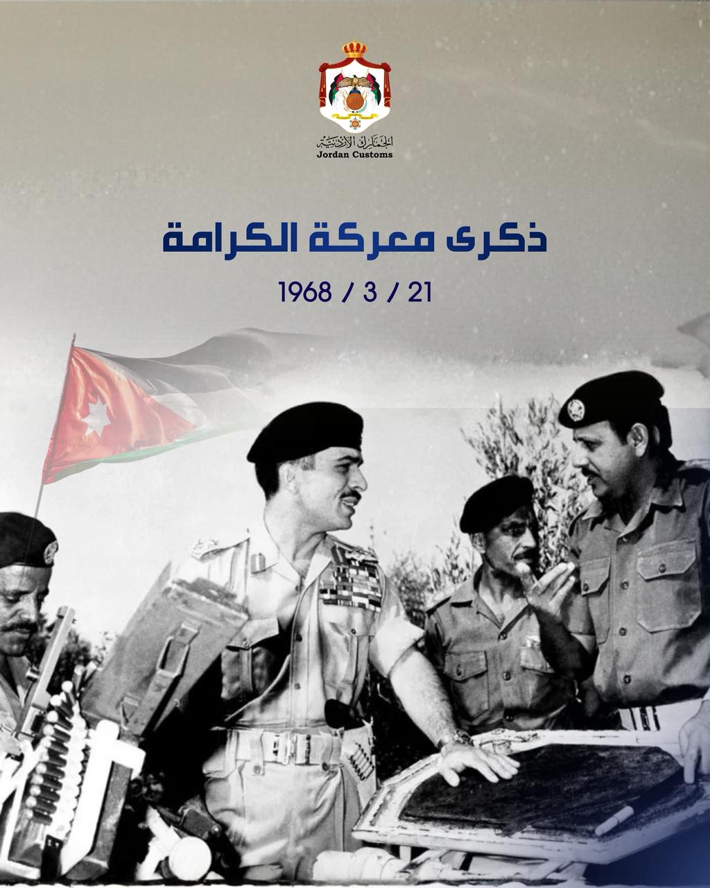 معركة الكرامة المحطة المُضيئة في تاريخ الأردن حيث سطّر نشامى القوات المسلحة الأردنية – الجيش العربي أروع صور البطولة والفداء في الحادي والعشرين من آذار عام 1968. ففي الكرامة امتزجت الإرادة الصلبة بالإيمان العميق بعدالة القضية فكان الصمود عنوان المرحلة وكانت التضحية جسراً عبرت عليه الكرامة الوطنية إلى آفاق المجد. لم تكن الكرامة مجرد مواجهة عسكرية بل كانت رسالة بأن الأردن بقيادته الهاشمية وجيشه العربي الباسل وشعبه الوفي قادرٌ على الدفاع عن أرضه وصون سيادته لترسّخ في الوجدان معنى العزة وتبقى ذكرى خالدة تُجدّد في النفوس روح الانتماء والفخر جيلاً بعد جيل.